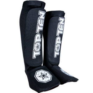 Optimal für MMA, K1 oder Thaiboxen! „Contender“ Schienbein- und Spannschützer von TOP TEN aus hautfreundlichem Baumwollmaterial zur Verminderung der Prellgefahr. Die dauerelastischen Bandagen lassen sich wie Strümpfe überziehen und liegen rutschfest über Schienbein und Spann. Zusätzlich geben die „Contender“ Schützer einen zusätzlichen Stützeffekt für ein sicheres Auftreten im Ring oder Octagon. Ein elastischer Klettverschluss am oberen Rand sorgt für einen festen Sitz.